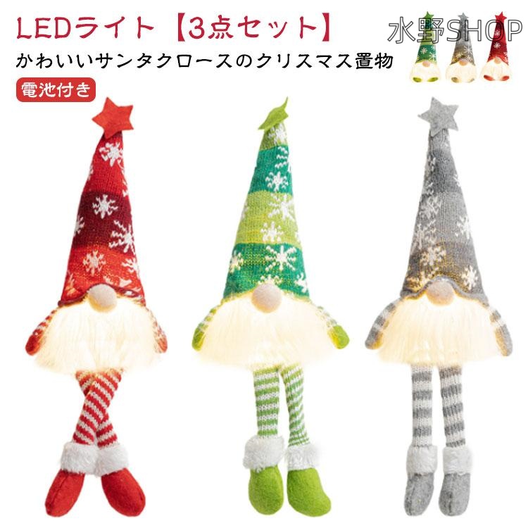 ■3点セット 光る クリスマス 置物 飾り LED 照明 北欧 サンタクロース イルミネーション ドワーフ人形 ぬいぐるみ おもちゃ オーナメント