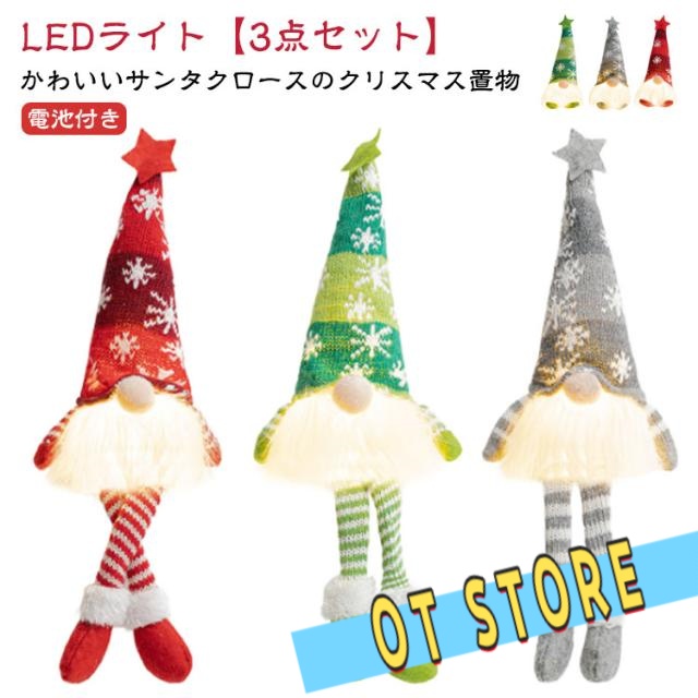■光る 3点セット 飾り イルミネーション LED ディスプレイ ドワーフ人形 北欧 照明 サンタクロース デコレーション ぬいぐるみ 卓上 クリ