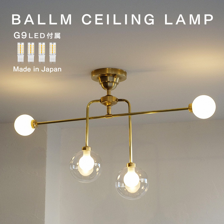 ■バルム シーリングランプ Ballm Ceiling lamp シーリングライト 4灯 ガラス G9口金 40W相当 450lm ミッドセンチュリー 北欧 真鍮製 天井
