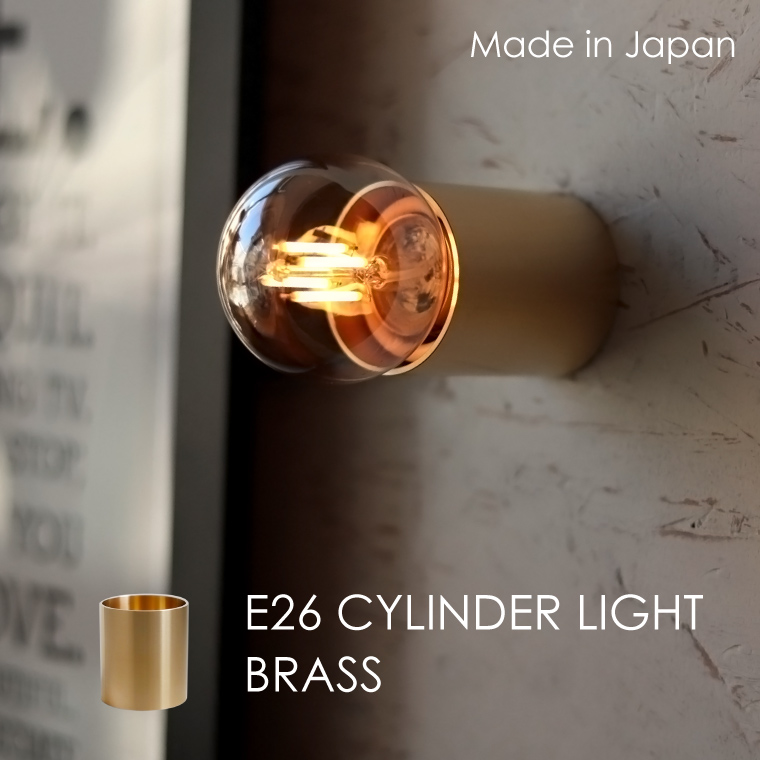 日本製のシンプルでコンパクトなレセップライト 「E26シリンダーライト ブラス」 壁にはもちろん天井にも取り付けが可能な小型の円柱ソケット形(筒型)ブラケットライトです。 光沢がある上質な輝きを放つ、磨き上げられた真鍮タイプ。 1.5mmの素材を使用しているので、高級感や重厚感ある雰囲気が漂います。 合わせる内装やLED電球によってシンプル・ナチュラル・クラシカル・レトロ・アンティーク・カフェ風・北欧風・ブルックリン・インダストリアル・モダン・ミッドセンチュリー・ホテルライクインテリア・エレガント・フェミニンなど様々に表情を変化させます。 手のひらに乗るぐらいのミニマルで小さい1灯用ウォールライトは廊下や玄関など限られたスペースにも設置可能。 おしゃれな照明を取り付けたいけどあまりスペースが取れない、トイレ、洗面所、クローゼット、階段、ロフト、スキップフロア、屋根裏部屋、狭小住宅などにもおすすめです。 もちろん、リビングやキッチン、寝室、書斎などのアクセント照明、インテリア照明、間接照明にも最適な壁付け照明です。