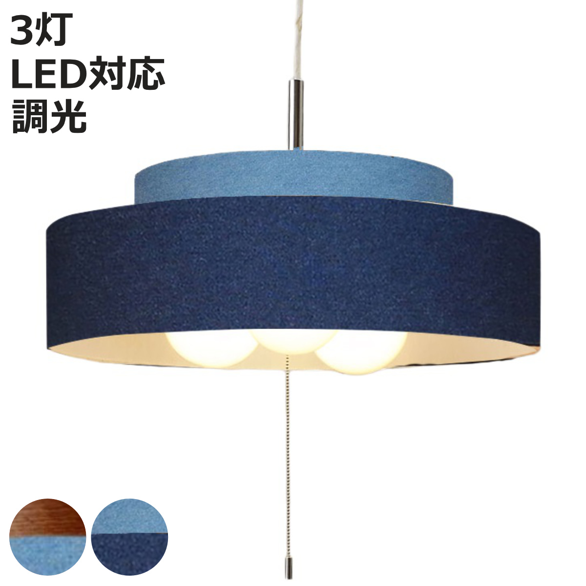 ■ペンダントライト 3灯 LED対応 Dual デニム ( 照明 LED 洋室 寝室 ダイニング 紐付き 引き紐 吊り下げ E26 北欧風 カジュアル 上品 照明