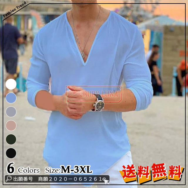 ■最安挑戦 冬新作 送料無料 新作 Tシャツ メンズ トップス Vネック カジュアル 七分袖 Tシャツ 無地 春夏 薄手 ゆったり プルオーバー Tシ