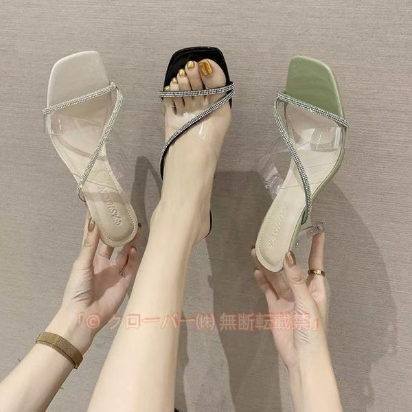 ■サンダル レディース ミュール ピンヒール スクエアトゥ 8センチヒール つっかけ 歩きやすい スリッパサンダル 緑 黒 白 夏 カジュアル