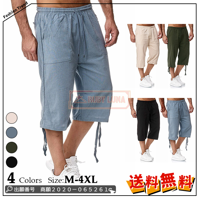 ■最安挑戦 冬新作 送料無料 新作 メンズ パンツ クロップドパンツ メンズ ボトムス カジュアル リネンパンツ スポーツパンツ 7分丈 イージ