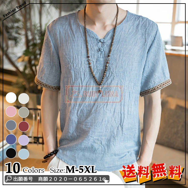 ■最安挑戦 冬新作 送料無料 新作 メンズ シャツ 半袖Tシャツ メンズ リネンTシャツ 薄手 Vネック 大きいサイズ 綿麻 カジュアル トップス