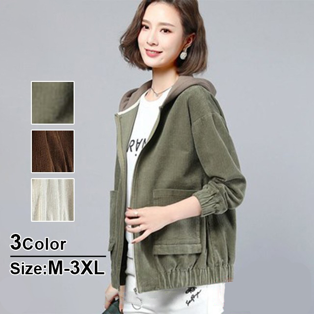 ■冬新作 送料無料 新作 レディースジャケット コーデュロイジャケット フード付き 秋 レディース カジュアル 大きいサイズ 3XL アウター
