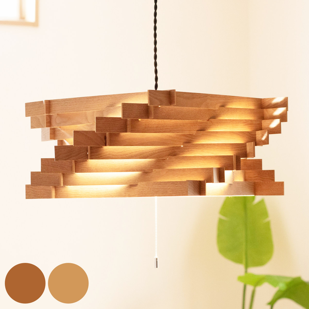 ■ペンダントライト 3灯 トルネード L 木製 日本製 ( 照明 LED 洋室 和室 寝室 ダイニング 紐付き 引き紐 吊り下げ E26 北欧風 カジュアル