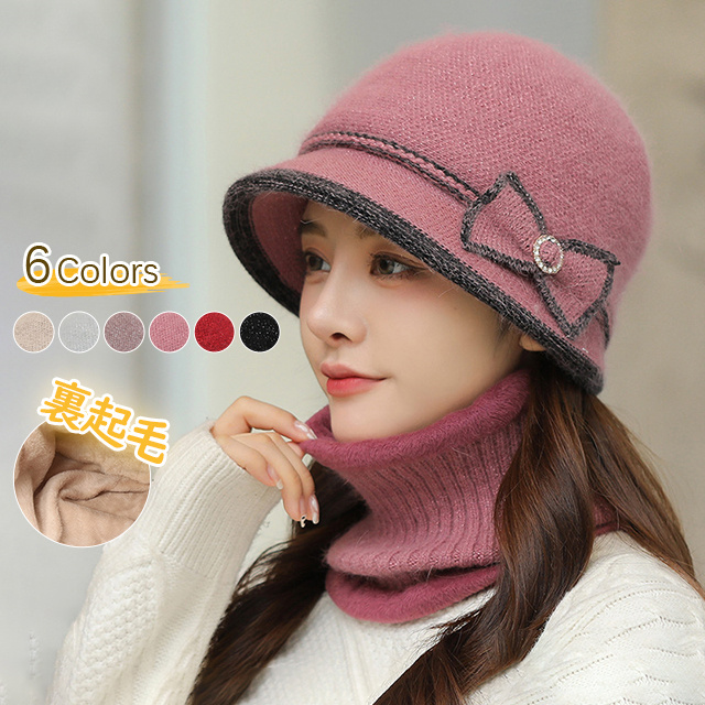 ■冬新作 送料無料 新作 レディース ニット帽子 マフラー付き 裏起毛 秋 ニットキャップ カジュアル シニット帽 婦人帽子 キャスケット つ