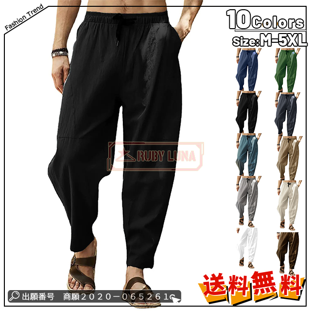 ■最安挑戦 冬新作 送料無料 新作 パンツ メンズ リネンパンツ 夏 薄手 綿麻 涼しい ロングパンツ 無地 イージーパンツ 通気性 カジュアル