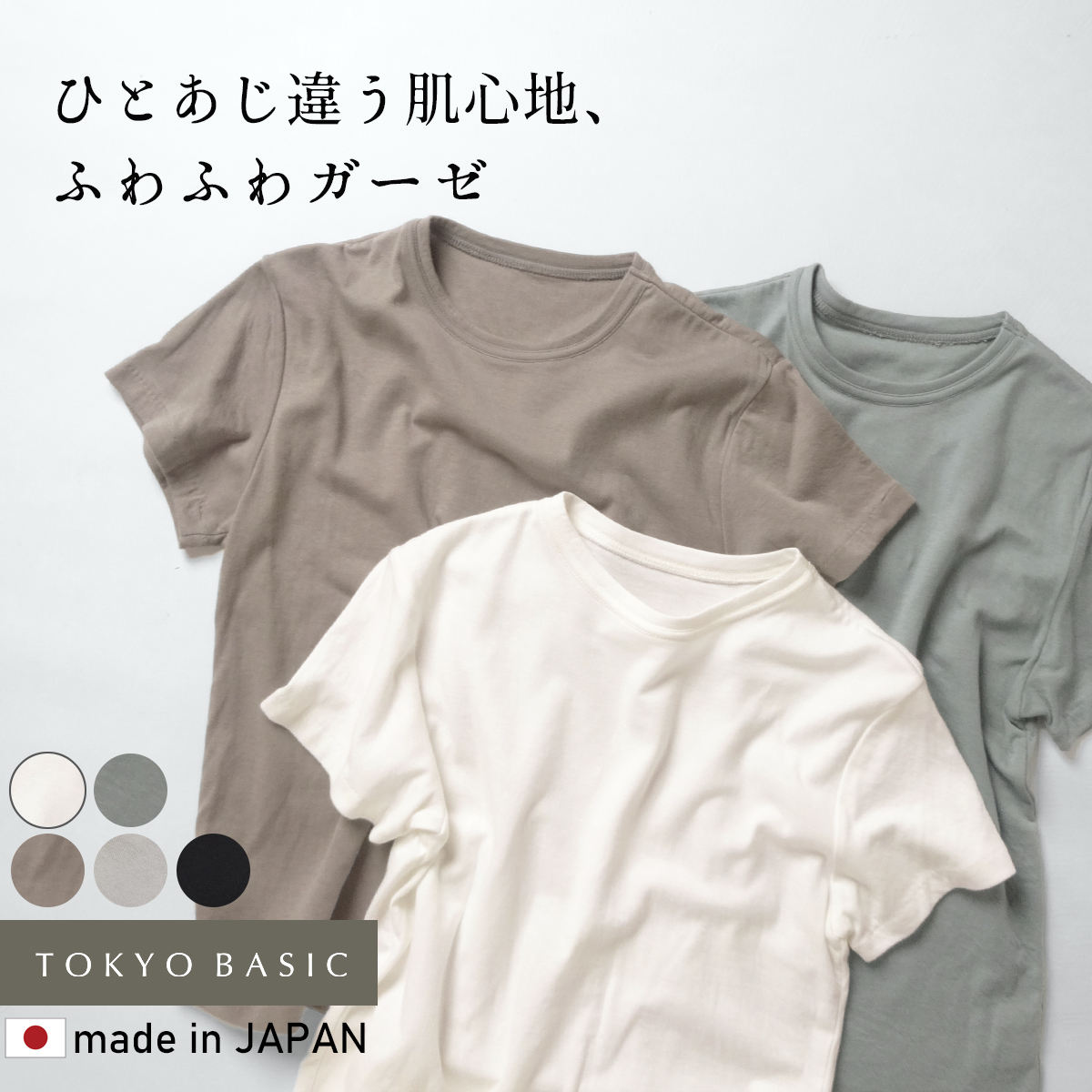 ■ふわふわ コットン ガーゼ Tシャツ 日本製 / レディース 半袖 綿100% 無地 40代 50代 60代 女性 ファッション カジュアル 白 白t コッ