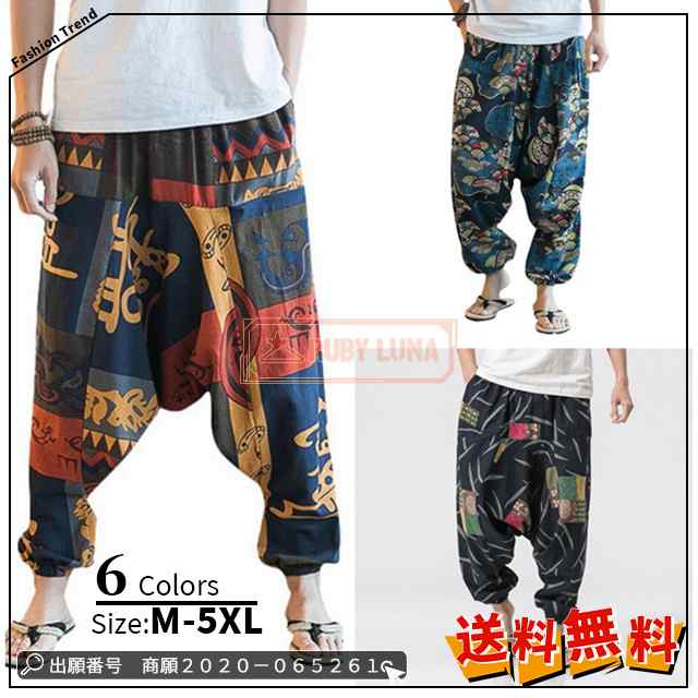 ■春新作 新作 送料無料 ワイドパンツ パンツ メンズ サルエルパンツ プリント 麻風 ボトムス サルエル ハイウエスト カジュアル パンツ ゆ
