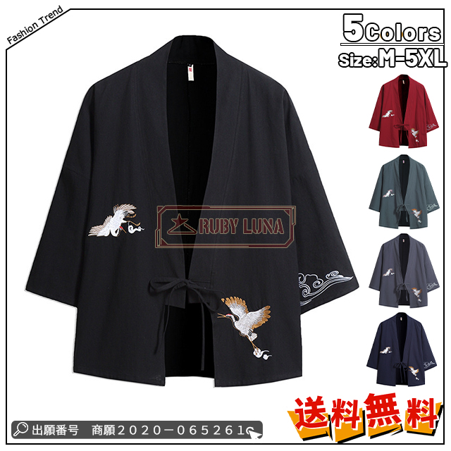 ■最安挑戦 冬新作 送料無料 新作 メンズ カーディガン 綿麻 七分袖 トップス カジュアル 大きいサイズ 鶴 刺繍 ウインドブレーカー 羽織
