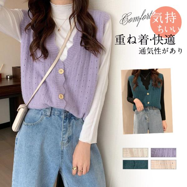 ■ニットベスト レディース トップス 重ね着 無地 ゆったり 柔らか 暖か 体型カバー 着?せ 可愛い おしゃれ カジュアル 通勤