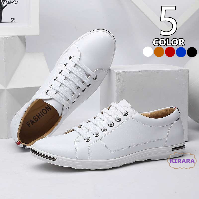 【サイズ】 24cm/38 24.5cm/39 25cm/40 25.5cm/41 26cm/42 26.5cm/43 27cm/44 27.5cm/45 28cm/46 28.5cm/47 29cm/48 【素材】アッパー:PU革 ソール:ゴム 【カラー】ホワイト、カーキ、レッド、ブルー、ブラック ※サイズ違いによる返品、交換は対応いたしかねますので、予めご了承ください。 ※モニター設定、照明等により実際の商品と色味が異なる場合がございます。 ※サイズについては生地の伸縮により誤差及びタグの表記とは異なる場合がございます。 ※商品の開封時に素材の臭いを感じる場合がございます。 湿気が少なく風通しの良い場所で、一週間程度陰干しして頂くと自然に軽減されます。