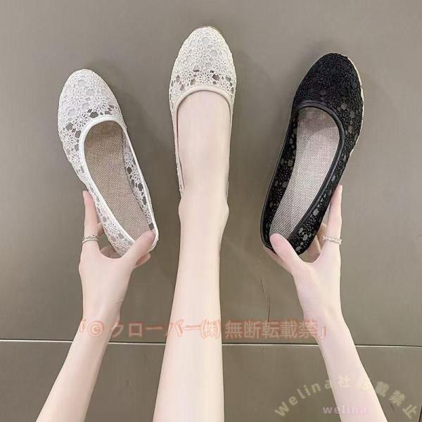 ■ぺたんこパンプス レディース フラット ローヒール レース Welina(株) 歩きやすい 疲れにくい カジュアル 通勤 お出かけに 上品見えす