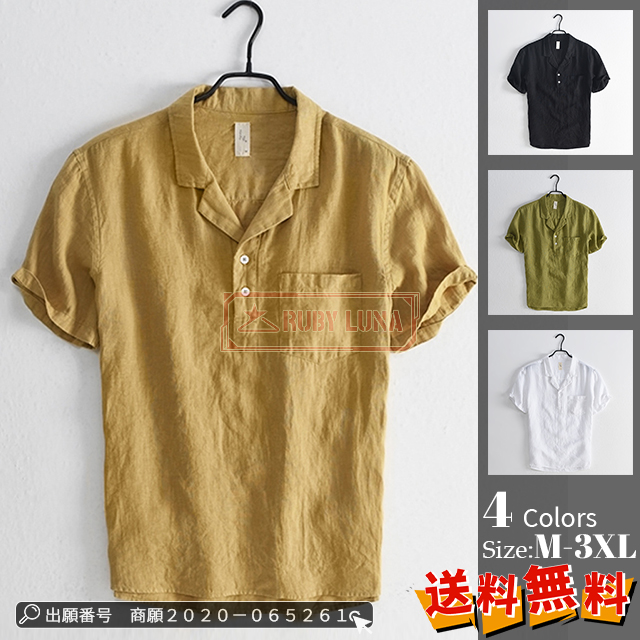 ■最安挑戦 春新作 送料無料 新作 メンズ シャツ リネンシャツ スタンドカラー 夏物 薄手 半袖tシャツ カジュアル メンズ トップス 通勤 無