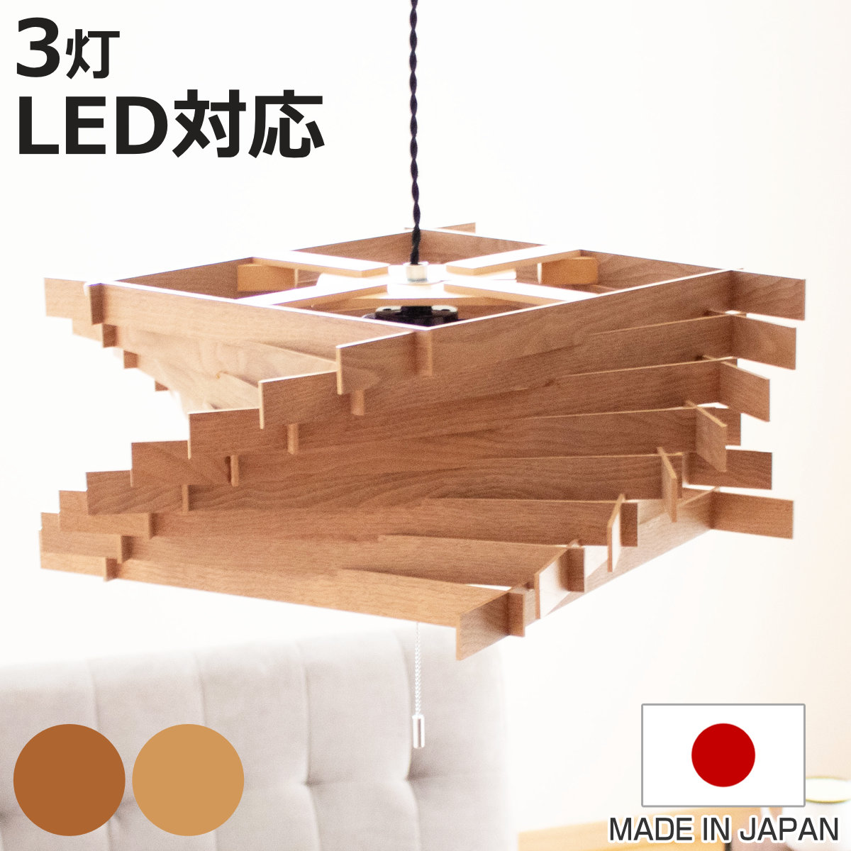 ■ペンダントライト 3灯 Woody 木製 日本製 ( 照明 LED 洋室 和室 寝室 ダイニング 紐付き 引き紐 吊り下げ E26 北欧風 カジュアル 上品