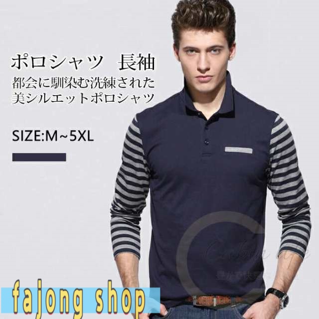 ポロシャツ 長袖 メンズ 袖ボーダー ポロシャツ カジュアル ドライ感 春秋 通気性 シンプル ゴルフウェア ギフト ビジネス 男性