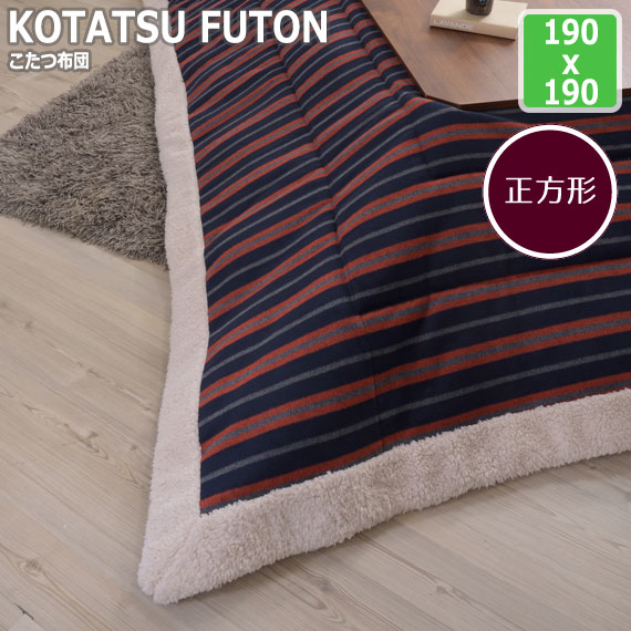 ■KOTASTSU FUTON 薄掛コタツ布団 正方形 (こたつ 掛け布団 ストライプ 正方形 シープボア カジュアル 北欧 冬物 防寒 190x190 幅190cm お