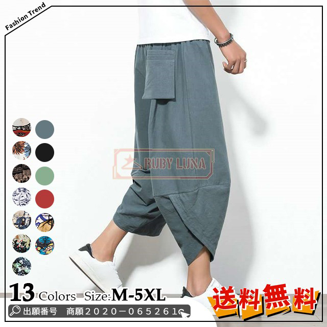 ■赤字覚悟 送料無料 メンズ サルエルパンツ 綿麻 7分丈 リネン ゆったり 大きいサイズ おしゃれ リラックス カジュアル パンツ リネンパン