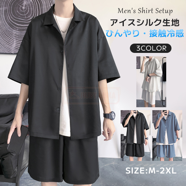 ■最安挑戦 冬新作 送料無料 新作 セットアップ メンズ 上下セット アイスシルク ジャージ 接触冷感 半袖シャツ ショートパンツ カジュアル