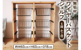 ■【ふるさと納税】無垢材 ワイヤーバスケット シェルフ 6段 かご付 ブラウン|新星金属製作所 大阪府 守口市 玄関 リビング 子供部屋 ホル