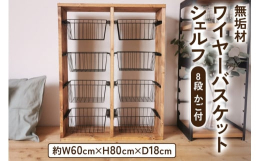 ■【ふるさと納税】無垢材 ワイヤーバスケット シェルフ 8段 かご付 ブラウン|新星金属製作所 大阪府 守口市 玄関 リビング 子供部屋 ホル