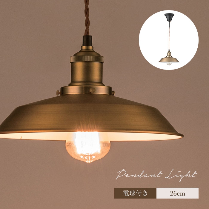 ■ヴィンテージ風ゴールドペンダントライト 直径26cm エジソン電球付き 天井照明 ランプ シェード ダイニング 白熱灯 LED対応 1灯 60W E26