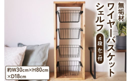 ■【ふるさと納税】無垢材 ワイヤーバスケット シェルフ 4段 かご付 ブラウン|新星金属製作所 大阪府 守口市 玄関 リビング 子供部屋 ホル