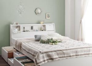 ■ダブルベッド 2人 マットレス付き 連結可 つなげる 宮付き ヘッドボード 枕元 棚 ラック 携帯置き ティッシュ置き メガネ置き リモコン