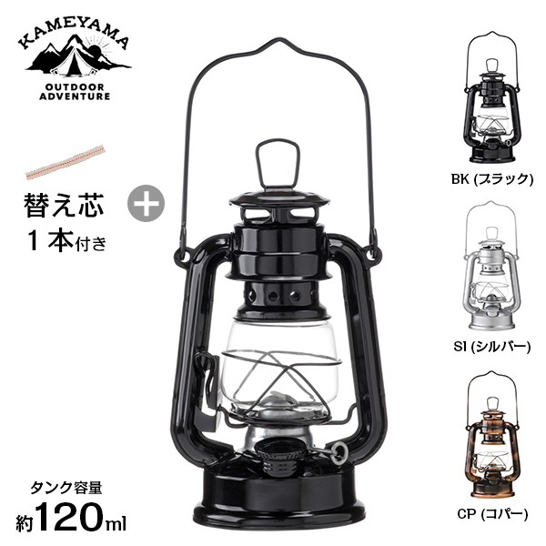 ■カメヤマ オイルランタンミニ ロゴ入り+替え芯1本付きセット (ブラック/シルバー/コパー)