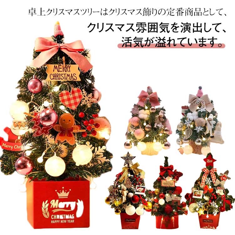 ■ミニクリスマスツリー ナチュラルスノー クリスマスツリー 卓上 机 置物 LEDライト付き テーブル オーナメント 足元 豪華 上品 装飾 セッ