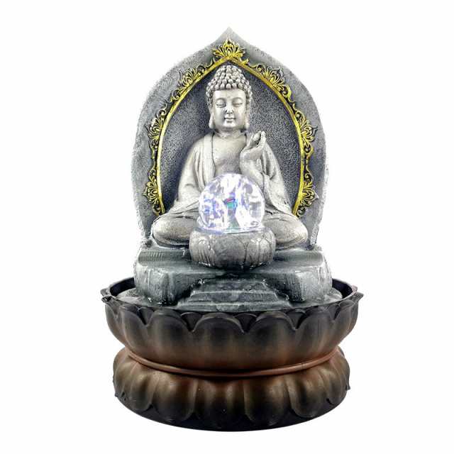 卓上噴水 デスクトップ噴水 樹脂 室内 風水 玄関 置物 インテリア おしゃれ 加湿器 流水 LEDライト付き 工芸品 開運 装飾 卓上用飾り 部屋 オフィスに対応 ヨガ 風水グッズ 110V 仏像
