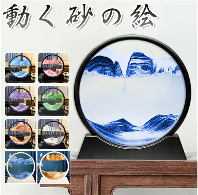 ■置物 流砂絵 流れる 砂絵時計 絵画 画像 装飾品 部屋飾り 店飾り ガラス 砂 移動 インテリア小物 置物 オフィス用品 デスクトップ お洒落