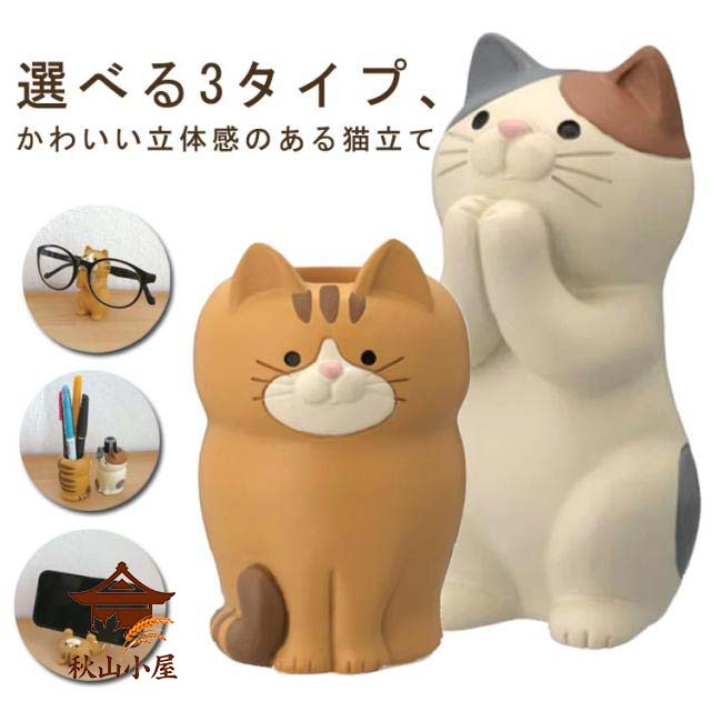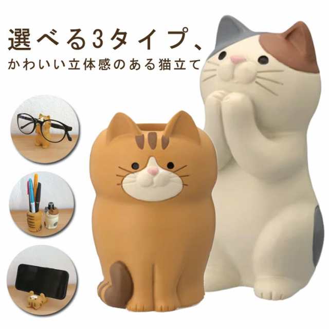 ■可愛い 猫 ペン立て 卓上 ホルダー 置物 メガネ置き スマホスタンド ねこ 携帯電話用ドック インテリア ネコ 置物 滑り止め スタンド ケ