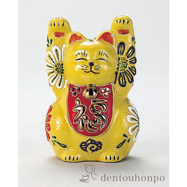 ■「送料無料」 九谷焼 福万歳招猫 黄盛 3号 ( 木札名入れ有料 置物 幸運 開運 開店祝い 風水 九谷焼 結婚 出産 内祝い 引き出物 )