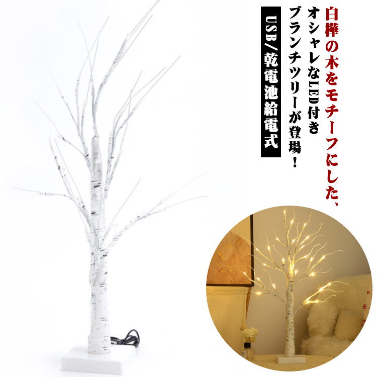 ■高さ45cm クリスマスツリー LEDライト クリスマスツリー イルミネーション USB/乾電池給電式 白樺 北欧風 置物 常夜灯 24LED 卓上ツリー