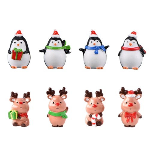 ■クリスマス ミニチュア 置物 8個セット 可愛い 樹脂 ペンギン トナカイ ミニ クリスマス オーナメント 置物 クリスマス 飾り 卓上 盆栽
