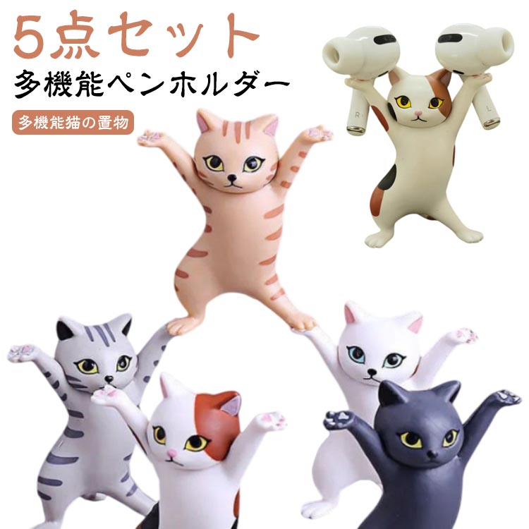 ■置物 踊る猫 猫 ネコ おしゃれ 5点セット airportsホルダー 猫のペン立て おもしろグッズ ぺんおき ペンホルダー モデル ヘッドフォンホ