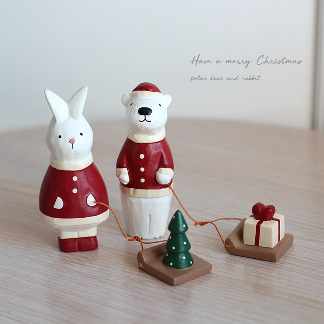 ■クリスマス置物 2点セット シロクマ ウサギ(クリスマス 置物 サンタ 雑貨 飾り オブジェ 北欧 風 クリスマスツリー) 即納