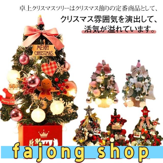 ■ミニクリスマスツリー ナチュラルスノー クリスマスツリー 卓上 机 置物 LEDライト付き テーブル オーナメント 足元 豪華 上品 装飾 セッ