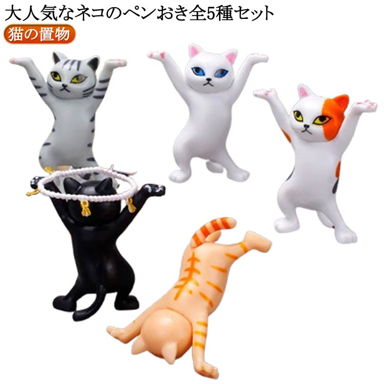 ■5点セット!猫のペンホルダー 猫のペン立て 置物 ネコのペンおき かわいい イヤホンホルダー 癒し用品 ダンス用品 猫の置物 ヘッドフォン