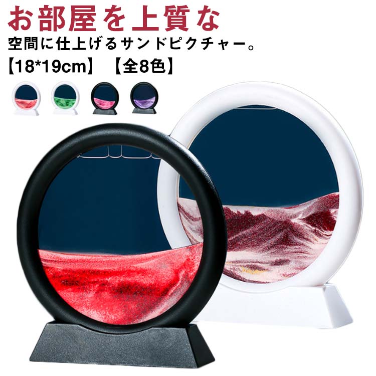 ■サンドピクチャー 置物 置き物 砂のアート 砂の絵 3D 流れる サンドアート 丸型 18*19cm 砂絵 砂時計 インテリア 雑貨 癒し グッズ 玄関