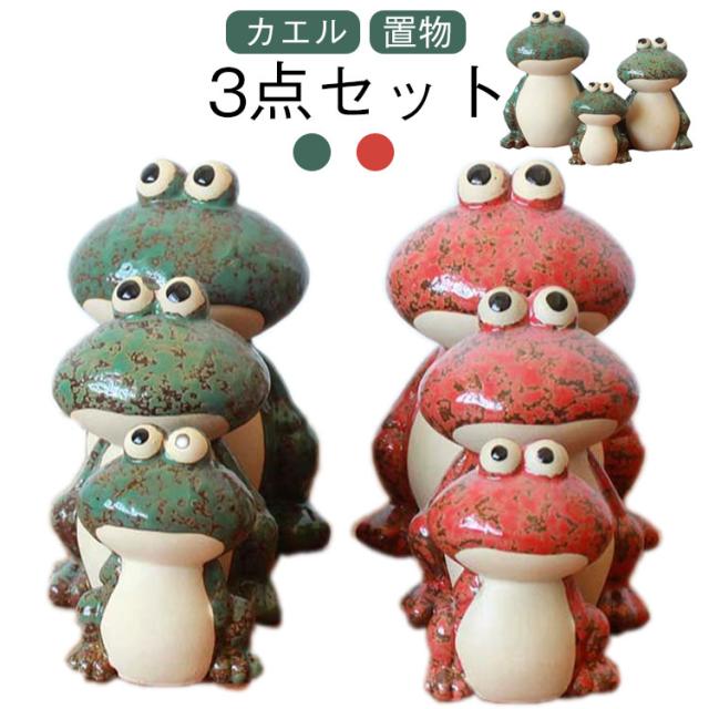 装飾 オーナメント カエル オブジェ 置物 池 玄関飾り 蛙 カエル カエルの家族 3点セット 陶器 雑貨 縁起物 風水 インテリア 庭園 人工 インテリア 置物ガーデニング 雑貨 カエル飾り オブジェ ガーデン プレゼント