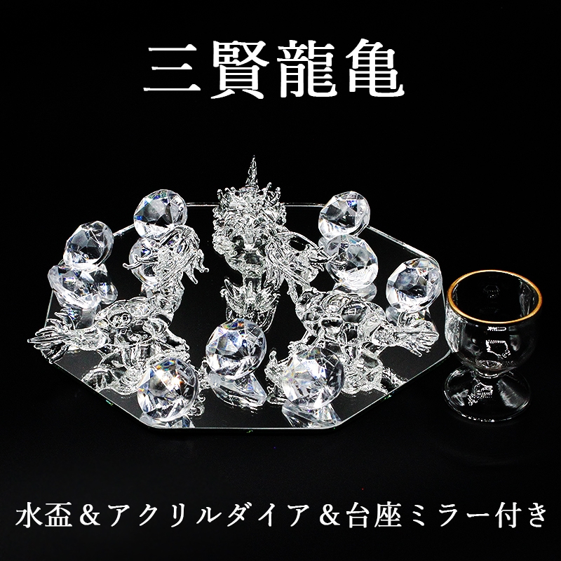 ■【送料無料】 三賢 龍亀 クリスタル製 龍亀3体セット 幸雲&ミラー&水盃付 龍亀 かめ カメ 置物 開運 竜 辰 ドラゴン 風水 願い龍 浄