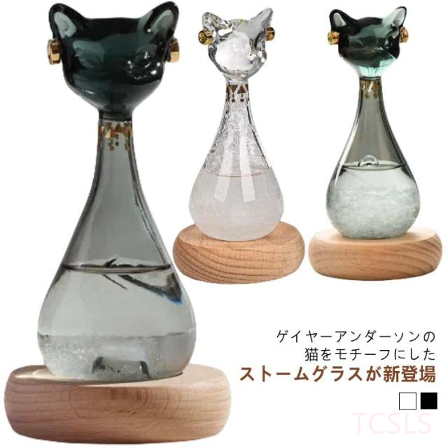 ■猫の天気予報士 ストームグラス 猫 天気予報 晴雨予報 グッズ ガラス 置物 オブジェ ねこの置物 結晶 季節 飾り 天候予測器 気象計 気温