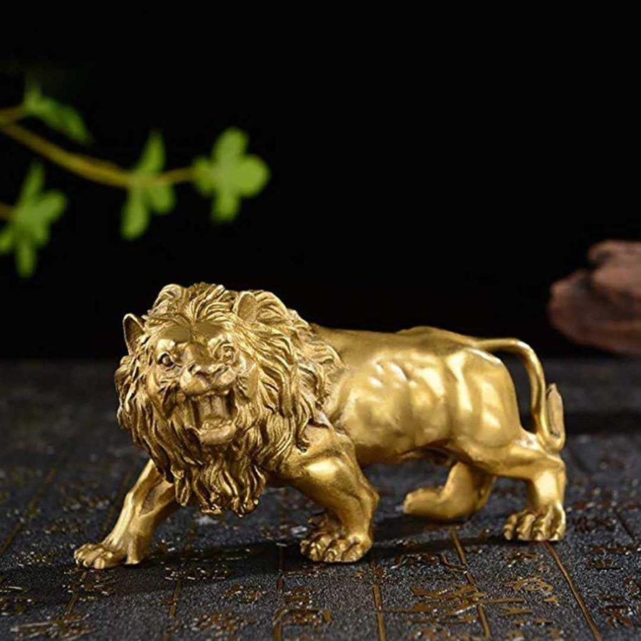 サイズ約15cm×約7cm×約8cm重量約500g素材 金属ライオンは力の象徴です。邪気や悪気を祓い除け、その場所や、空間の邪気や悪気の侵入を防ぐ力があるといわれています。また、仕事運や商売運を上げ、金運・財運を強力に上げるパワーがあるともいわれています。また、生命力や活力げ家庭運を良い方へと向上させ、夫婦円満、子宝、安産の強い味方になるともいわれています風水では、ライオンは力、勇敢、強者を象徴しており、生命力や活力を家庭運を上げるパワーもあり、家庭運を良い方へと向上させてくれるといわれております風水が盛んなアジアでは、今でも重要な政府機関などの入り口やデスクには、ライオンの置き物が置かれています。これはライオンの置き物に邪気を祓う力があると考えられているからです。国の中枢を司る機関にライオンの置き物を置くことで、国の繁栄と安定を願っていますまた、ライオンの置き物は財産運や仕事運を高めるとも言われています。悪いものを祓うことで、多くの人間が望む財産や仕事に関する良い運気を引き寄せることができるとされているからですこのようにライオンは幸運を引き寄せる重要な存在として位置づけ