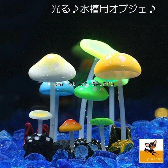 ■水槽内アクセサリー 水槽オーナメント 水槽用オブジェ 光る new 夜光オブジェ 暗闇 水槽 オブジェ オーナメント 置物 水草 お花 キノコ