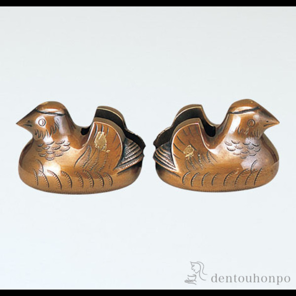 ■「送料無料」 鴛鴦 屏風押え 山吹色 銅製 ( 木札名入れ有料 置物 幸運 風水 縁起物 人気 高岡銅器 結婚 出産 内祝い 引き出物 金婚式 )