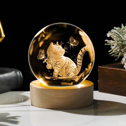 ■3D ネコ クリスタル ボール 誕生日 プレゼント 可愛い 間接照明 LEDライト 癒しグッズ 雰囲気作り 飾り 女性 人気 ギフト 置物 寝室 ライ